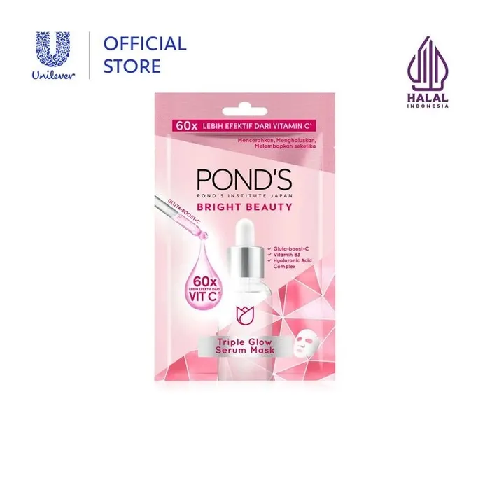 Baru POND'S Bright Triple Glow Serum Mask membuat wajahmu jadi cerah, halus, dan lembap hanya dalam 15 menit! • 6OX LEBIH EFEKTIF DARI VITAMIN C. Serum wajah pencerah yang menggabungkan 3 kekuatan terbaik, mampu bekerja 60X lebih efektif dari Vitamin C^. ^melanin inhibition in epidermis, based on in-vitro test • GLUTA-BOOST-C yang MENCERAHKAN. Glutathione yang kaya akan antioksidan dan dikenal mampu mencerahkan kulit, menyamarkan flek hitam, untuk wajah tampak cerah dan warna kulit merata. • VITAMIN B3+ yang MELEMBUTKAN. Serum dengan kandungan Vitamin B3 untuk menyamarkan pori sehingga wajah tampak mulus. • HYALURONIC ACID yang MELEMBAPKAN. Menyerap ke setiap lapisan epidermis kulit untuk wajah tampak lembap berkilau. Apakah kamu merasa wajah mu kusam dan butuh nutrisi tambahan untuk tampak glowing? Coba POND'S Bright Beauty Triple Glow Serum Mask baru, mengandung serum 100x lebih banyak dari sheet mask lainnya* untuk mencerahkan, menghaluskan, dan melembapkan kulit dalam 1 kali pakai! Masker serum dengan konsentrat brightening yang menggabungkan 3 kekuatan skincare terbaik untuk pancarkan triple action glow: - Mencerahkan dengan Gluta-Boost-C: mengandung glutathione, antioksidan yang dikenal mampu mencerahkan kulit. Formula unik Gluta-Boost-C efektif menyamarkan flek hitam dan mencerahkan wajah 60X lebih efektif dari Vit C^ - Melembutkan dengan Vitamin B3+: menyamarkan pori untuk wajah tampak mulus - Melembapkan dengan Hyaluronic Acid: menyerap mendalam ke setiap lapisan epidermis kulit untuk wajah tampak lembap berkilau *Niacinamide dibandingkan dengan Pond's sheet mask lainnya ^melanin inhibition in epidermis, based on in-vitro test"No reviews found