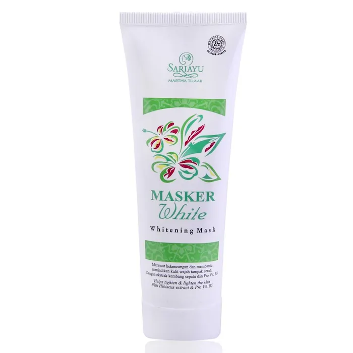 Sariayu Masker White-whitening mask untuk semua jenis kulit, merawat kehalusan dan kekencangan kulit wajah Mengandung Vitamin E sebagai antioksidan, pro vitamin B5 untuk melembabkan kulit Merawat kehalusan dan kekencangan kulit serta membantu mencerahkan kulitNo reviews found