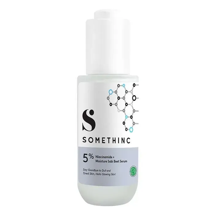 Bagi Anda yang sedang mencari serum untuk mencerahkan kulit dan membantu memudarkan dark spot atau hiperpigmentasi, mungkin Serum Niacinamide bisa dijadikan dipilihan yang tepat. Pasalnya, serum Somethinc memiliki kandungan niacinamide yang dapat mencerahkan kulit dan melindungi skin barrier dengan produksi ceramide. Selain itu, kandungan beetnya juga membantu untuk melawan radikal bebas dari paparan sinar UV. Teteskan 5-10 tetes ke telapak tangan Ketuk & pijat serum secara perlahan ke wajah yang sudah dibersihkan Layering max 3.serum Dapat digunakan setiap hari (malam & siang) Ingredients: Centella Asiatica Water (63%), Niacinamide (5%), methylpropanediol, Betaine, water, 1,2-Hexanediol, glycerin, polysorbate20, ammonium acryloyldimethyltaurate/vp copolymer, polyglyceryl10 laurate, Tetrahydrocurcumin, butylene glycol, xanthan gum, ethylhexylglycerin, adenosine, Hydrolyzed Algae Extract, Anthemis Nobilis Flower Extract, Beta Vulgaris (Beet) Root Extract, allantoin, Caffeine, Tocopherol(Vit E).