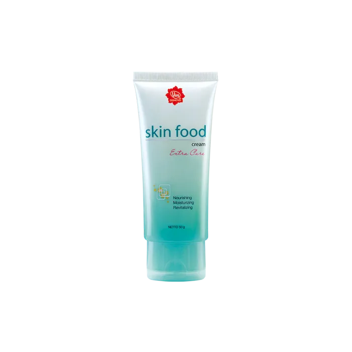 Cream yang memberikan nutrisi dan kelembaban kulit secara mendalam serta menjaga vitalitas kulit. Mengandung Vitamin A yang berperan dalam regenerasi sel kulit, Vitamin E sebagai Anti Oksidan dan menjaga elastisitas kulit, Vitamin F dan Cholesterin untuk mencegah kekeringan kulit. Diperkaya Natural Oil yang mengandung Omega 3 untuk membantu perbaikan jaringan kulit rusak. Pemakaian secara rutin membuat kulit tampak sehat dan lembut terawat. Cara Pemakaian : Oleskan Viva Skin Food Cream secara merata pada kulit wajah, dan seluruh badan terutama bagian kulit yang kering dan kasar seperti tangan, siku, lutut dan tumit. Untuk hasil maksimal gunakan setiap hari sesudah mandi dan sebelum tidur.