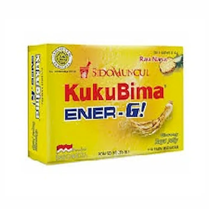 KukuBima Ener-G! merupakan pelopor minuman energi serbuk dengan berbagai varian rasa, serta bermanfaat sebagai suplemen penambah stamina bagi pria dan wanita. KukuBima Ener-G! menghadirkan berbagai rasa diantaranya anggur, jeruk, jambu, mangga, nanas, kopi, original dan susu soda. KukuBima Ener-G! dilengkapi dengan Vitamin B12 yang bermanfaat untuk menambah darah serta ginseng dan royal jelly yang lebih banyak dibandingkan dengan jenis minuman energi lainnya. Dan perlu diketahui dalam mengkonsumsi minuman ini diperlukan waktu sekitar 30 menit sebelum berolahraga, atau beraktifitas agar dapat menambah stamina, serta memberikan rasa segar.No reviews found
