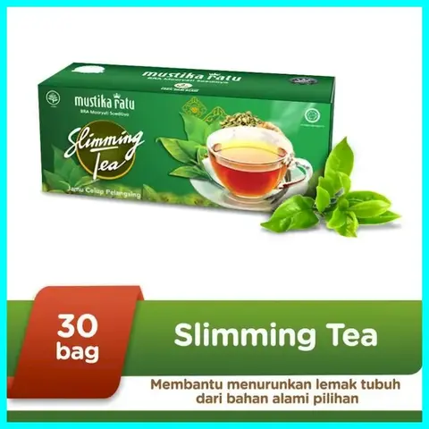 Terbuat dari ekstrak daun Jati Belanda (Guazumae Folium) yang berguna sebagai penurun berat badan, serta Teh Hijau (Theae Folium) pilihan yang berguna untuk diuretic (melancarkan keluarnya air seni), penyegar badan, sebagai anti oksidan, serta dapat menambah sistem kekebalan tubuh. Masukkan 1 kantung Slimming Tea ke dalam cangkir yang berisi air mendidih. Diminum setiap hari 2 atau 3 kali sesudah makan. Bagi yang telah mendapatkan tubuh ideal, untuk mempertahankannya dianjurkan untuk minum setiap hari 1 kali sesudah makan. Slimming Tea ini bisa di konsumsi dari usia 15 Tahun.No reviews found