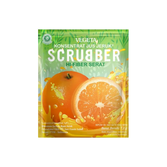 VEGETA SCRUBBER dengan konsentrat jus jeruk Membantu memenuhi kebutuhan serat tiap hari Perhatian Tidak boleh diminum anak dibawah 5 tahun.. Ibu hamil... Dan ibu menyusui