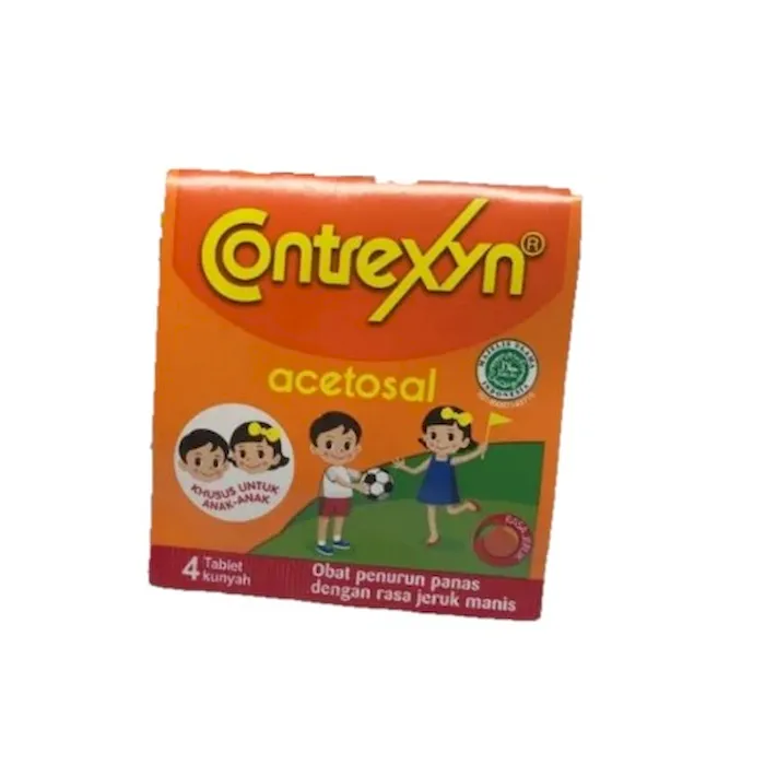 Indikasi Umum : Demam dan rasa sakit (nyeri) yang berkaitan dengan flu, masuk angin atau setelah vaksinasi. Komposisi ACETOSAL Dosis Anak berusia 6-9 tahun : 3-4 kali sehari 3 tablet, Anak berusia 3-6 tahun : 3-4 kali sehari 1 1/2 -2 tablet, Anak berusia 1-3 tahun : 2-3 kali sehari 1-1 1/2 tablet, Anak berusia 1/2 -1 tahun : 2-3 kali sehari 1/2 tablet, Anak berusia 3-6 bulan : 2-3 kali sehari 1/3 - 1/2 tablet. Aturan Pakai Sebaiknya diberikan bersama makanan.