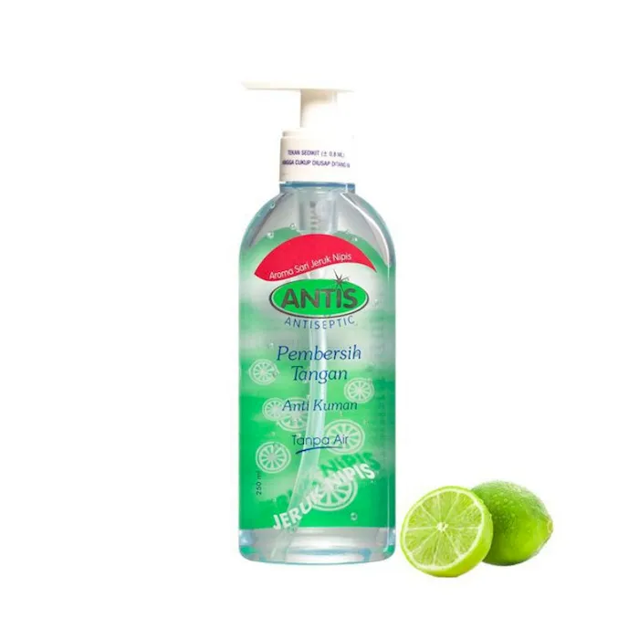 Adalah produk hand sanitizer beraroma jeruk nipis (pembersih tangan anti kuman tanpa air) berbasis alkohol yang efektif membunuh kuman dengan cepat, seperti kuman flu dan diare, dan juga praktis untuk digunakan dimana saja dan kapan saja. Manfaat: Antis mengandung aktif alkohol 70% yang cepat membunuh kuman seperti E. coli dan S.aureus. Antis mengandung moisturizer sehingga tangan tidak terasa kering. dalam antis memiliki efek long lasting untuk memberikan perlindungan dari kuman selama 2 jamNo reviews found