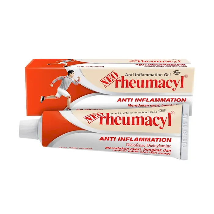 Pilihlah jenis dan manfaat obat yang sesuai dengan kebutuhan Anda. Neo Rheumacyl menghadirkan 4 macam pilihan untuk jenis obat krim dan gel, berikut penjelasan kegunaan dan manfaatnya secara detail: Neo Rheumacyl Cream Muscle & Joint, memberikan rasa hangat yang cepat meresap dan dapat meringankan nyeri pada otot sendi, keseleo, dan pegal-pegal. Cukup dioleskan pada bagian yang sakit, tersedia dalam 2 pilihan size yaitu kemasan 15 g dan 30 g. Neo Rheumacyl Neck & Shoulder, memberikan solusi tepat untuk meredakan kaku otot pada leher dan pundak. Dibekali dengan kandungan Menthol dan Eucalyptus (kayu putih) disertai aroma terapi yang lembut, dapat memberikan kehangatan dan relaksasi disetiap olesannya. Neo Rheumacyl Joint Care, efektif membantu meredakan nyeri sendi dan memelihara kesehatan pada persendian karena mengandung formula Methyl Salicylate, Methyl Sulfonyl Methane dan Glucosamine. Neo Rheumacyl Anti Inflammation, solusi untuk mencegah parahnya memar akibat benturan, dapat meredakan nyeri yang tak tertahankan, nyeri yang disertai bengkak, memar, keseleo dan radang sendi.
