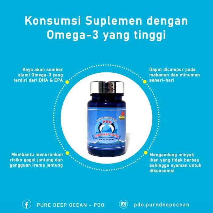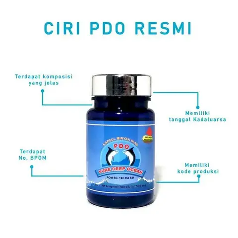 Adalah minyak ikan dari jenis ikan yang hidup di laut yang dalam (Deep Ocean) di Indonesia bagian timur yang kedalamannya tidak tertembus sinar matahari dan terbebas dari pencemaran lingkungan dan diolah secara murni (Pure), alamiah, hygienis, dan bermutu tanpa bahan kimia sehingga dapat dikonsumsi untuk segala umur tanpa menimbulkan efek samping. Isi : 30 kapsul. Keunggulan : Menyembuhkan berbagai macam penyakit seperti : tekanan darah tinggi, tekanan darah rendah, asam urat, diabetes militus, asma, jantung koroner, stroke, hepatitis, kanker payudara, kanker hati, leukmia, kanker rahim, kanker paru-paru, dan lain-lain Menyembuhkan maagh kronis dan menormalkan kadar asam lambung Meningkatkan kecerdasan otak Menambah nafsu makan Menjaga kesehatan, stamina dan daya tahan tubuh Menjaga kesehatan mata Menyuburkan kandungan Mengandung semua unsur yang penting/ berkhasiat untuk tubuh, yaitu : Omega 3, 6 & 9 : 65,96% dan diperkaya dengan Vitamin E Dapat dikonsumsi untuk segala umur Telah mengantongi ijin BPOM RI : POM SD. 192 354 841 dan Sertifikat Halal MUI No. 01281097490214 Aturan Pakai : Dewasa : Pengobatan : 3 x 2 - 3 kapsul per hari Perawatan : 1 - 2 kapsul pagi & sore Anak-anak : 1 kapsul pagi dan soreNo reviews found