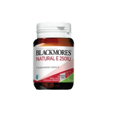 Blackmores Natural E 250 merupakan sumber alami antioksidan vitamin E yang bertahan lama dalam tubuh, dan 2 kali lebih efektif.Blackomres Natural E 250 hadir dengan dosisi yang disesuaikan dengan kebutuhan orang Indonesia. 1 Kapsul Sehari Mengandung Tinggi Vitamin E (Antioxidant Untuk Bantu Jaga Kesehatan Kulit) BPOM Halal Blackmores Natural E 250 IU mengandung vitamin E yang bekerja sebagai antioksidan dan menangkal radikal bebas untuk membantu menjaga kesehatan kulit Komposisi: Natural Vitamin E 250 IU (d-alpha-Tocopherol 168 mg) Bagaimana Natural E 250 IU dapat menjaga kesehatan kulit Anda? • Mengandung vitamin E yang bekerja sebagai antioksidan dan menangkal radikal bebas • Menangandung Vitamin E untuk menjaga kesehatan kulit dari dalam. Kemasan botol kaca ramah lingkungan Anjuran Pemakaian: Dewasa – 1 kapsul lunak setiap hari setelah makan atau sesuai petunjuk dokter. Petunjuk Penyimpanan: Simpan di bawah 30°C (suhu ruang) ditempat yang kering & jauhkan dari paparan sinar matahari langsung. Peringatan: Tidak dianjurkan untuk anak dibawah 12 tahun