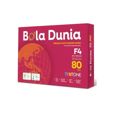 Kertas Bola Dunia dibuat dengan teknologi terdepan untuk memastikan kualitas produk. Kertas Bola Dunia didukung oleh teknologi terobosan terbaru yaitu TruTone Technology yang dikombinasi dengan proses kimiawi dengan permukaan mikro. Kertas Bola Dunia memiliki kualitas yang baik untuk digunakan cetak gambar. Kertas Multipurpose Bola Dunia cocok untuk fotokopi, cetak laser atau inkjet, dan kirim faks. Gunakan kertas Bola Dunia untuk penuhi kebutuhan kertas di perusahaan, usaha fotokopi, atau penggunaan di rumah. Inilah semua kelebihan kertas Bola Dunia Multipurpose. Kelebihan Kertas Bola Dunia Multipurpose Kertas untuk fotokopi, print laser dan inkjet, dan faks Cocok digunakan di perusahaan, usaha fotokopi, dan pengguna rumahan Teknologi TruTone, kertas lebih tebal dan hasil cetak lebih cerah Hasil cetak memiliki kontras tinggi Kertas lebih tebal anti macet pada mesin cetak Smooth Surface, meratakan tinta dan meningkatkan kerapatan cetak.No reviews found