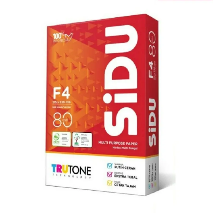 Ukuran: F4 (215 x 330 mm) Ketebalan: 80 Gsm Permukaan halus & warna putih cerah – hasil cetak tajam dan kontras warna maksimum Kertas lebih tebal & opasitas tinggi- anti macet dan cetak dua sisi Teknologi TRUTONE – memberikan kualitas gambar dan cetak maksimal serta reproduksi garis yang jelas dan warna yang cerah Bahan baku kertas diproduksi dari sumber yang bertanggung jawab yang telah bersertifikasi PEFC atau Program Pengesahan Sertifikasi Hutan (info lengkap www.pefc.org) Cocok untuk digunakan di kantor/perusahaan (laporan, memo, proposal) , usaha fotokopi dan rumah tangga serta pelajar (surat, tugas, skripsi, CV) Pilihan tepat untuk segala jenis mesin Fotokopi, Laser & Inkjet Print, FaxNo reviews found