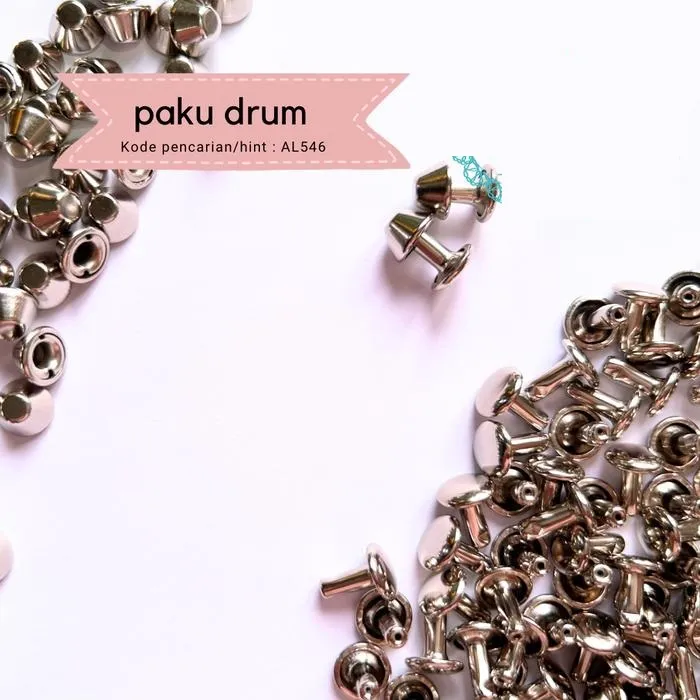 Paku Drum harga untuk 1 pasang 1 drum dan 1 rivet paku drum/paku gentong warna rhodium silver diameter 8mm fungsi : 1. penahan kain/kulit 2. alas tas...