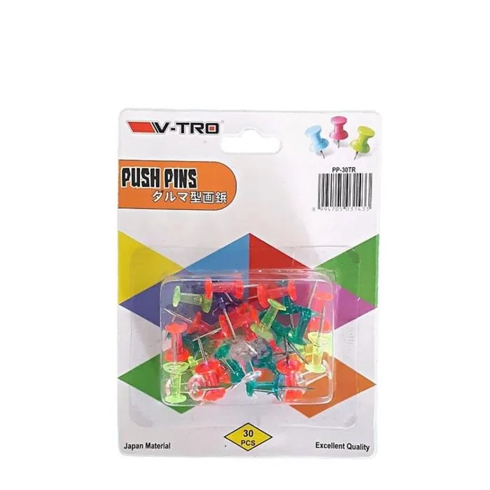 V-TRO Push Pins Spesifikasi Produk: - Isi 30 Pcs - Warna Warni - Material : Steel pin Benefit Produk : - Cocok digunakan di sekolah, kantor, dan...