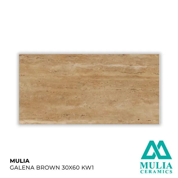 Mulia Ceramic 30x60 Type : Wall Tile Brand : Galena Brown Grade: KW1 Finish : Glossy Dimension : 30x60 cm Qty/Box : 5 Pcs Sqm/Box : 0.9 m2 Weight : 20kg