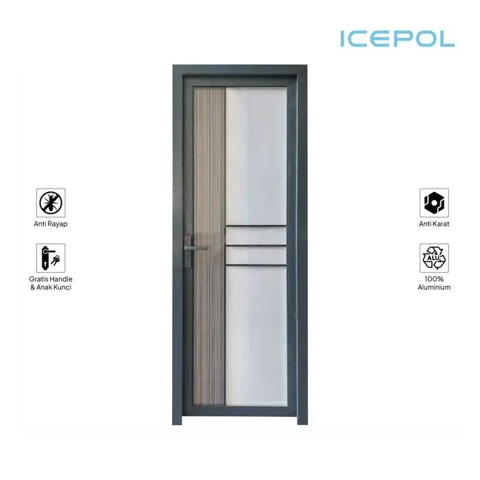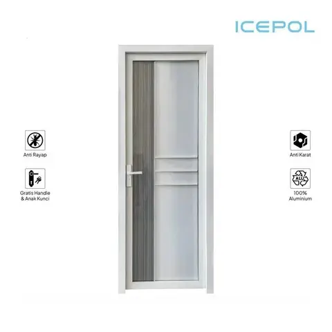 Icepol Pintu Alumunium 70x200 Icepol menawarkan pintu kamar mandi aluminium dengan kaca minimalis, memberikan tampilan rumah yang modern dan simpel....