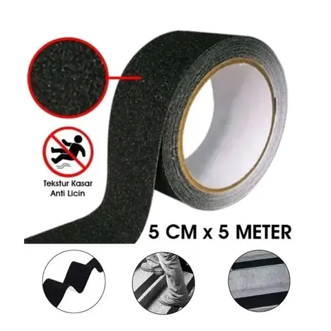 Lakban safety anti slip premium untuk perlindungan Anda! Bahan berkualitas dan tahan lama, mencegah risiko terpeleset di tangga, lantai, dan area licin lainnya. Mudah diaplikasikan. Pesan sekarang untuk memastikan keamanan keluarga dan tamu di rumah Anda! Bahan : PVC + Pasir Silika* Ukuran : Lebar 5cm, Diameter 11cm , Panjang 5m* Warna : Hitam* Anti slip, anti licin* Premium* Waterproof* Daya rekat kuat* Dapat di pasang di lantai, dinding, dan sebagainya* Resistensi Minyak dan Air cukup tinggi FUNGSI : * Mengurangi resiko tergelincir di lantai, atau permukaan lainnya yang licin * Digunakan sebagai lakban peringatan seperti perubahan tinggi lantai dllNo reviews found