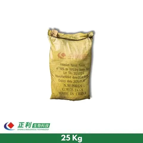 Cara menggunakan: Larutkan bubuk asam humat dengan air atau bisa langsung ditaburkan bubuk asam humat ke tanah. 2-5 kg asam humat bisa digunakan untuk 1 hektar Bentuk : Butiran/Tepung larut air Bisa Dicampur dengan pupuk NPK dan Jenis Pupuk Lainya. Pottasium Humate mengandung kombinasi asam fulvat dan humat. Hal ini memungkinkan tanaman memanfaatkan N dan P dan mikronutrien yang lebih efisien, mengurangi pencucian dan memperbaiki struktur tanah. Larutkan dengan cepat larutan berkisar antara 6-12 pH Berisi kombinasi asam fulvat dan humat, bersama dengan kalium 8% Bisa diaplikasikan melalui berbagai metode aplikasi, termasuk penyemprot, irigasi tetes, fertigasi dan di alur Mudah ditangani dan hemat biaya; menyediakan hingga 50 penghematan dalam pengiriman dan penyimpanan dibandingkan produk asam humat cair konvensional Kegunaan Kalium HUMAT: - Memperbaiki struktur tanah - Meningkatkan KTK Tanah - Meningkatkan aerasi tanah - Membuat tanaman lebih subur dan lebat - Mengoptimalkan penyerapan unsur hara oleh tanaman - Memacu perkembangan mikroorganisme tanah - Meningkatkan hasil tanaman