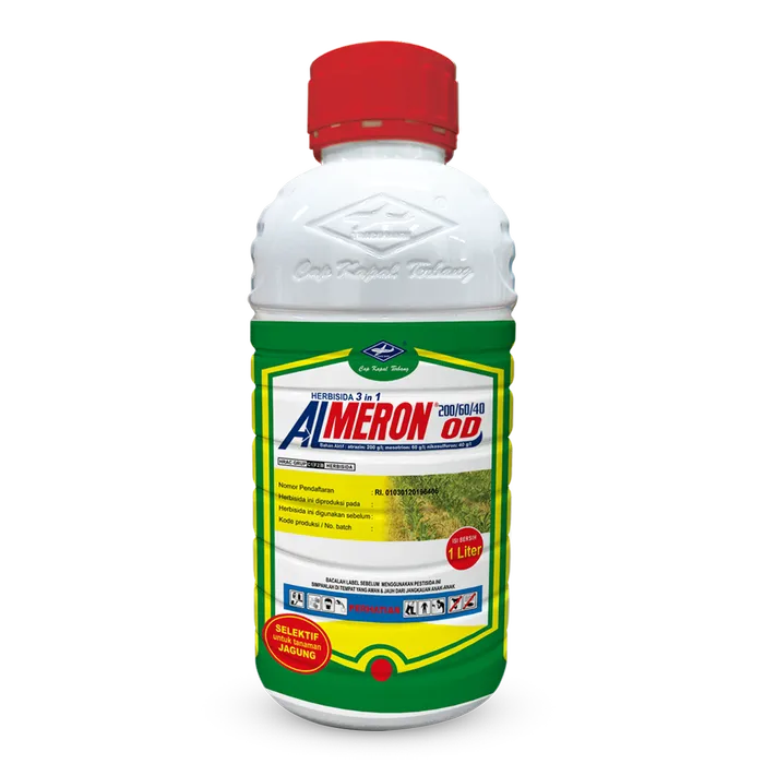 Herbisida memetik purna menumbuhkan tanaman jagung. Bahan aktif Atrazin 200 g/l, Mesotrion 60 g/l, Nikosulfuron 40g/l
