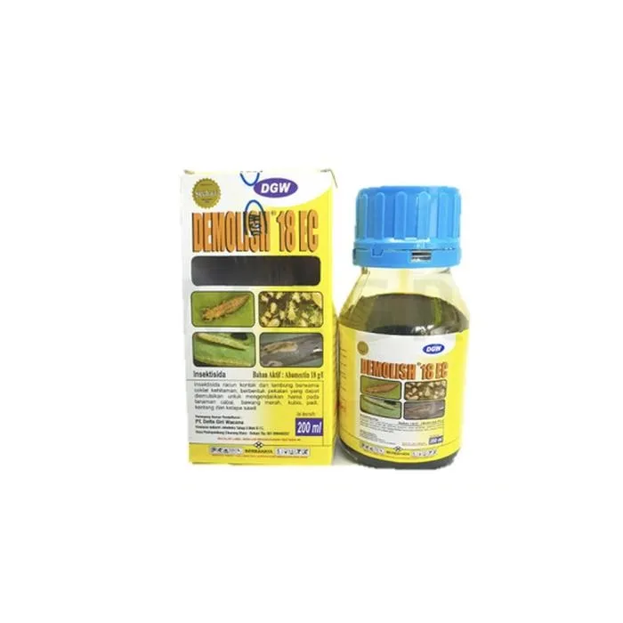 Kandungan : Abamectin 18g/l Bentuk : EC (Emulsible Concentrate) warna Hitam kecoklatan Cara Kerja : Kontak dan Lambung Diproduksi oleh : PT. Dharma Guna Wibawa Demolish 18EC untuk mengendalikan hama Thrips sp, Kutu Daun, Tungau, Ulat daun, dan wereng coklat. Thrips merupakan hama utama pada tanaman terutama tanaman Cabai, Tomat Demolish 18EC mampu membrantas hama trips dan sejenisnya secara tuntas dan cepat Dosis dan Aplikasi: - Apel hama sasaran Kutu daun 1-2 ml/l - Cabai hama sasaran Hama Thrips 1-2 ml/l - Jeruk hama sasaran Penggerek daun 1-2 ml/l - Kacang panjang Penggerek polong 1-2 ml/l - Bunga krisan Penggorok daun, Hama Thrips 1-2 ml/l - Kelapa sawit hama sasaran Rayap tanah 2-3 ml/l - Kentang hama sasaran Penggorok daun, Hama Thrips 0,5-1 ml/l - Kubis hama sasaran Ulat perusak daun 1-2 ml/l - Tomat hama sasaran Penggorok daun 1-2 ml/lNo reviews found
