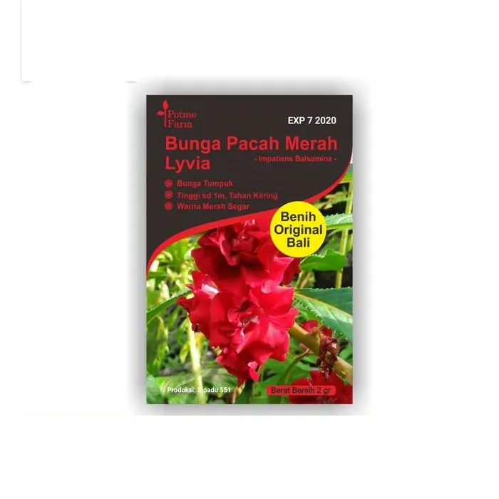 Potme Farm Benih Bunga Pacah Merah Lyvia Benih bunga merek Potme Farm adalah benih yang dikembangkan di Bali. Sangat tahan terhadap panas dan berbunga...