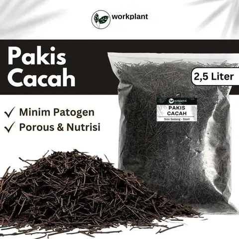 Akar Pakis merupakan media tanam yang berasal dari akar tanaman pakis. Media ini memiliki daya simpan air yang relatif sedang namun aerasinya tetap bagus. Pakis berupa cacahan ini umumnyadipakai sebagai media tanam ataupun campuran media tanam berbagai tanaman hias seperti anggrek, monstera, aglonema, calatea, keladi dan lain-lain. Pakis cacah memiliki sifat ringan dan menambah porositas media tanam, yang baik untuk pertumbuhan akar tanaman. Pakis cacah juga mengandung unsur hara sebagai suplemen penambah nutrisi tanaman, dan sifat yang tidak gampang terurai pada media tanam Beda pakis cacah oven adalah telah mengalami proses oven sedemikian rupa sehingga lebih steril dari hama atau mikroorganisme patogen yang tidak baik untuk tanaman. Produk kami ini kami proses oven dengan sedemikian rupa agar tidak gampang hancur dan lapuk namun tetap sterilNo reviews found