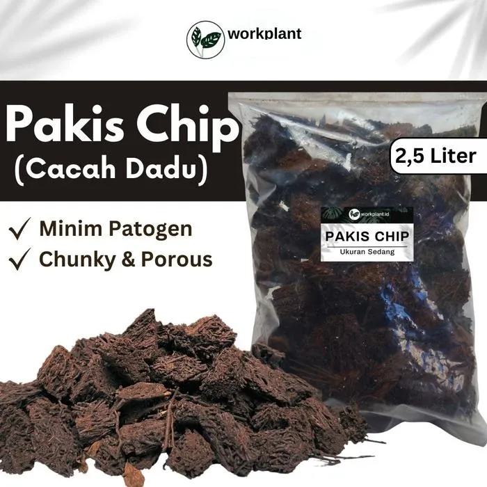 Media Tanam ini terbuat dari akar pakis yg dipotong2 / dicacah membentuk dadu / chip sehingga teksturnya kasar dan Chunky Akar Pakis Chip ini sering digunakan untuk media anggrek karna bentuknya yg CHUNKY sehingga tidak menyimpan air terlalu lama, cocok sebagai media penyimpan air dan penopang tanaman namun tidak menyebabkan tanaman busuk Pakis Chip juga bisa digunakan untuk media dasaran pot supaya aerasi atau sirkulasi udara didalam media tanam baik dan meningkatkan drainase supaya air tidak mengendap di dasar pot VOLUME / ISI : 2,5 Liter - Siap Pakai BERAT : +- 200-400 Gram (Kondisi Kering hingga Sedikit Lembab) *** Takaran kami menggunakan Volume biar pasti dan tidak berpengaruh terhadap kelembabannyaNo reviews found